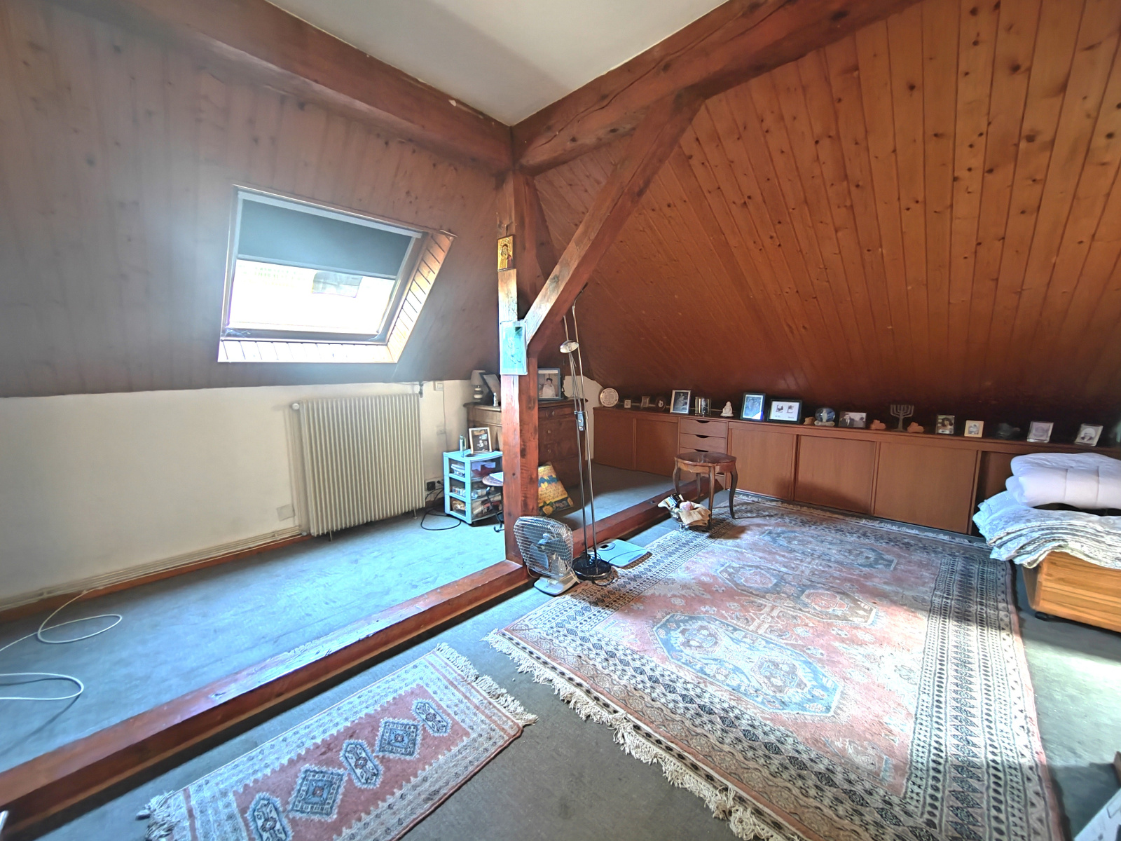 • Un espace de vie à l’étage à repenser selon vos envies, une salle de bain vintage et une chambre